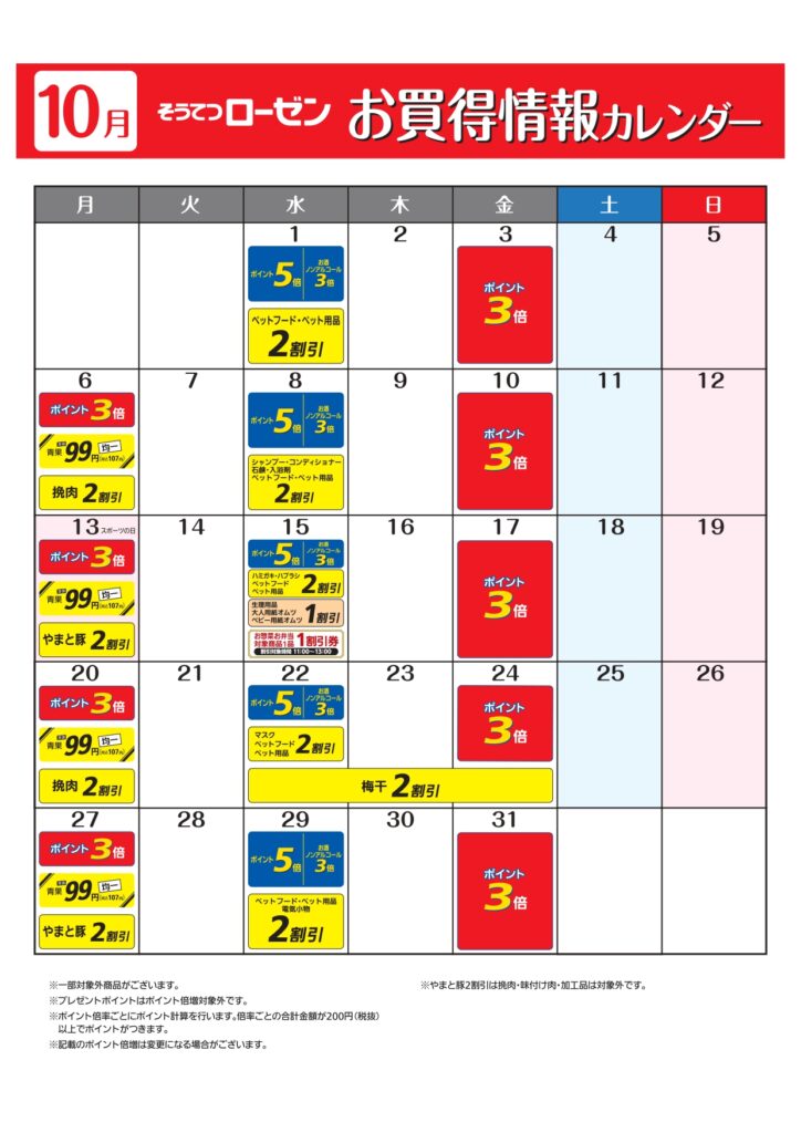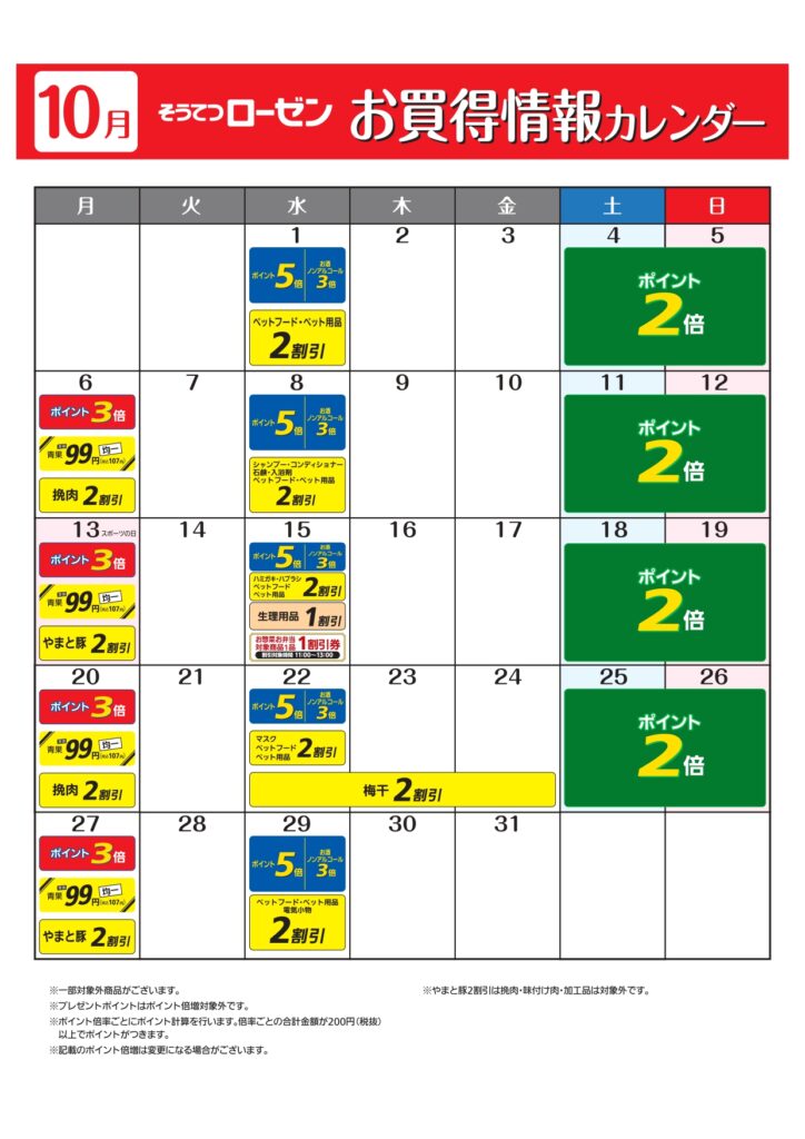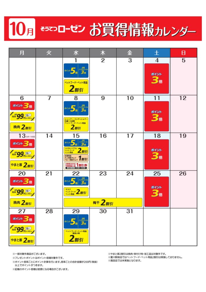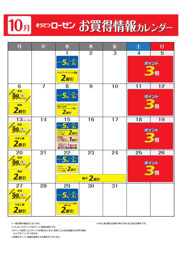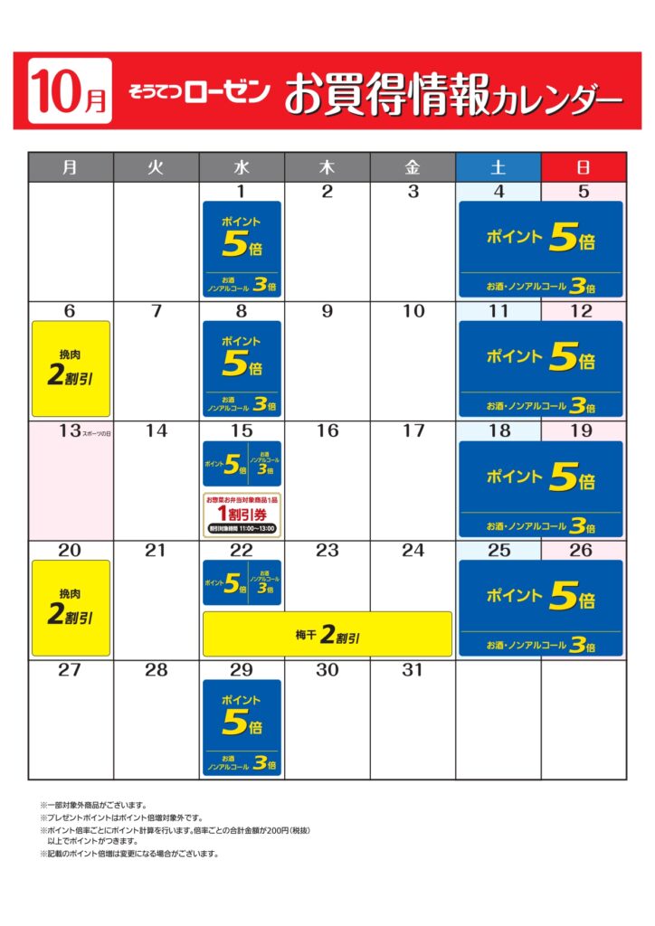 カレンダーをチェックしてお得にお買物をしましょう♪