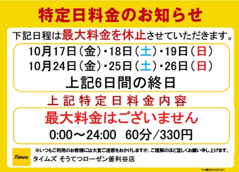 【釜利谷店】駐車場最大料金休止のお知らせ