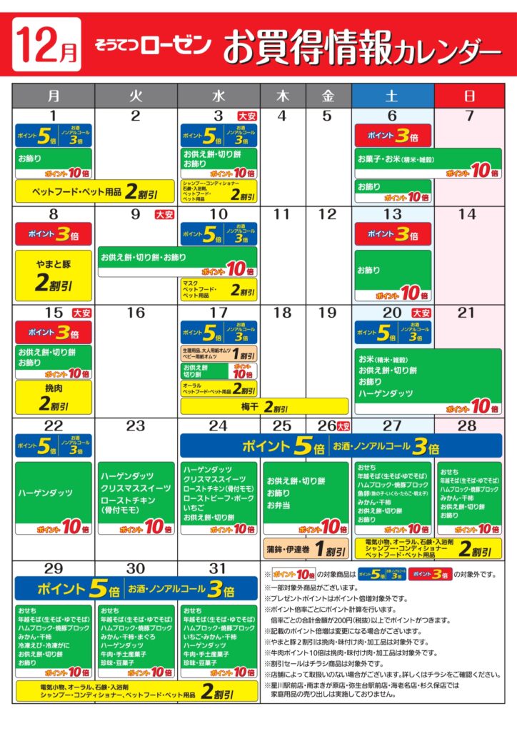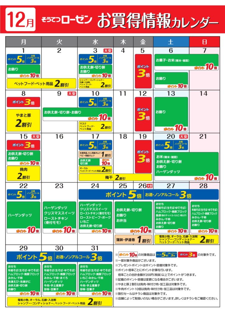 カレンダーをチェックしてお得にお買物をしましょう♪