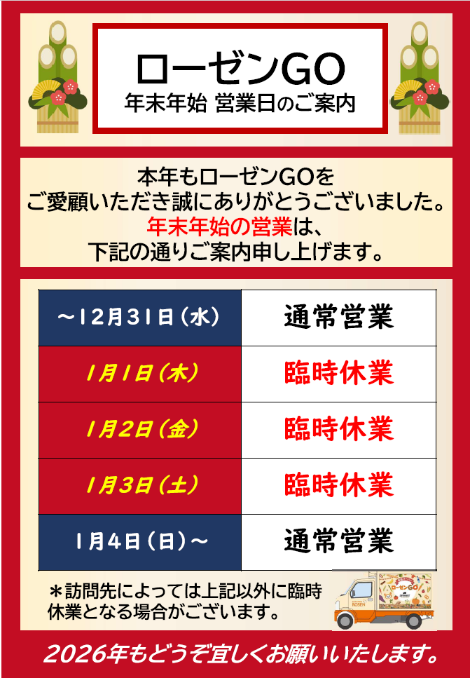 移動スーパー「ローゼンGO」 年末年始営業日のご案内