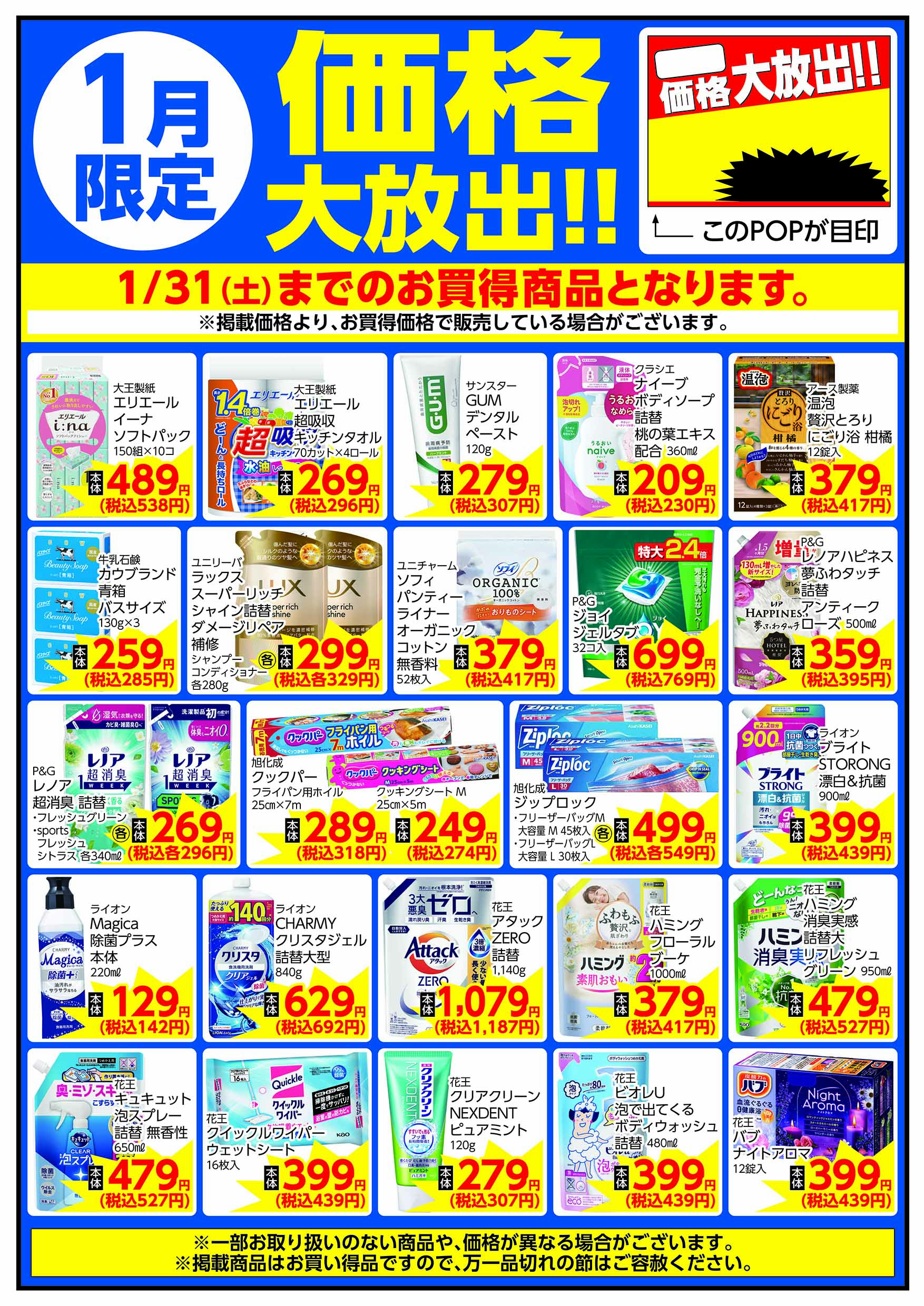 1月_価格大放出_ポスター_家庭用品