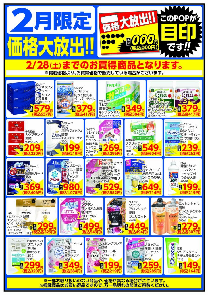 2/1(日)~2/28(土)までのお買得商品となります。