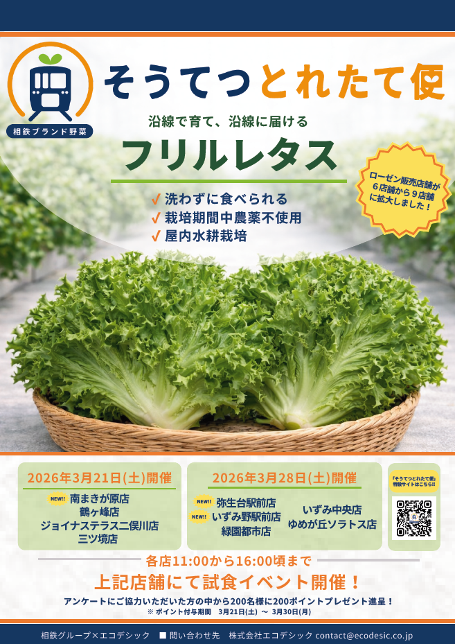2026年3月16日(月)から、相鉄ブランド野菜「そうてつとれたて便」の販売店舗を9店舗へ拡大します。