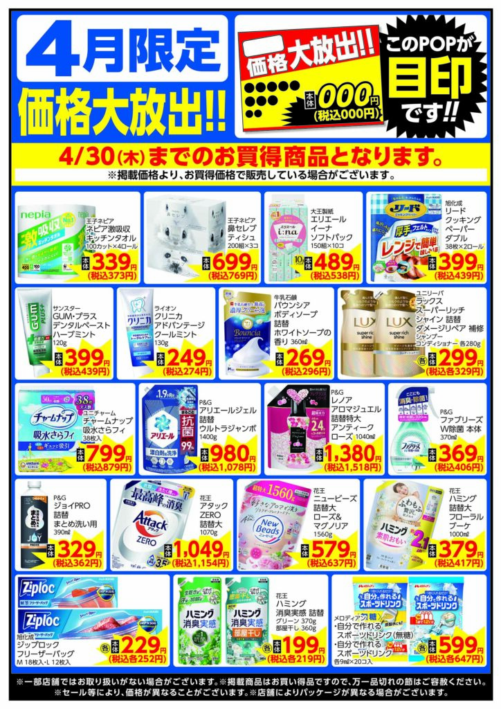 4/1(水)~4/30(木)までのお買得商品となります。