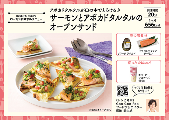 を塗り、②のアボカドタルタル、④のサーモンを