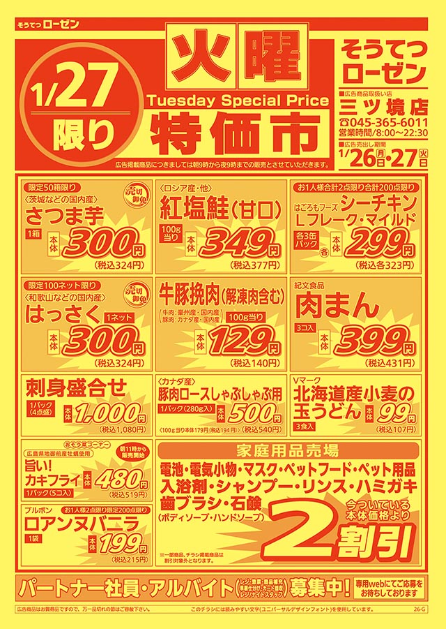 1/2〜1/31 1月限定 価格大放出!!日配