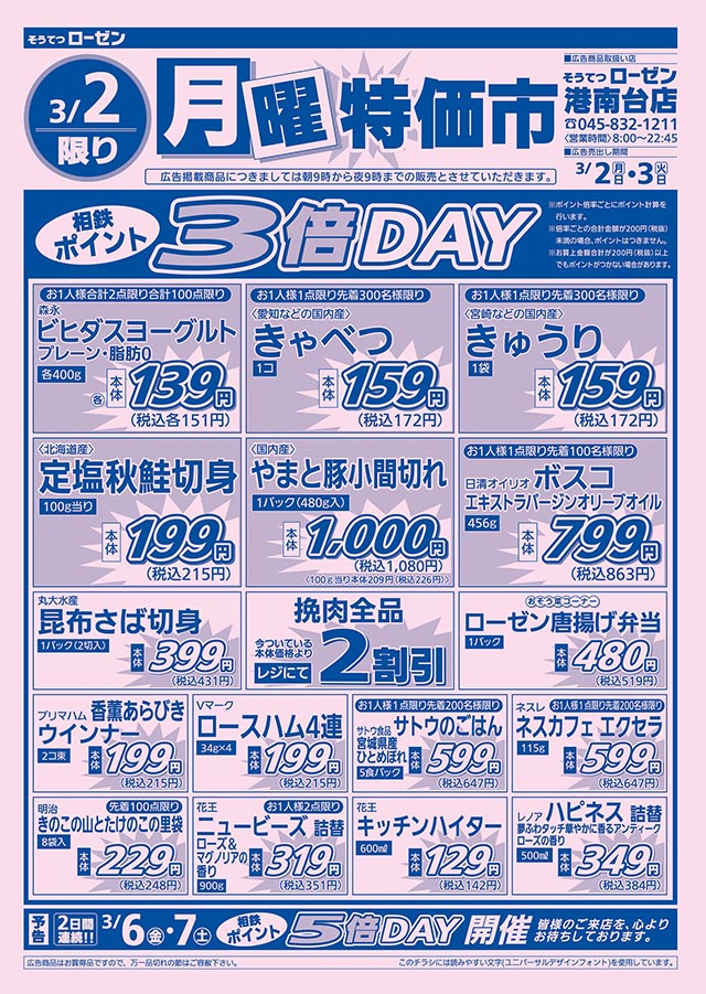 3/1〜3/31 3月限定 価格大放出!!日配