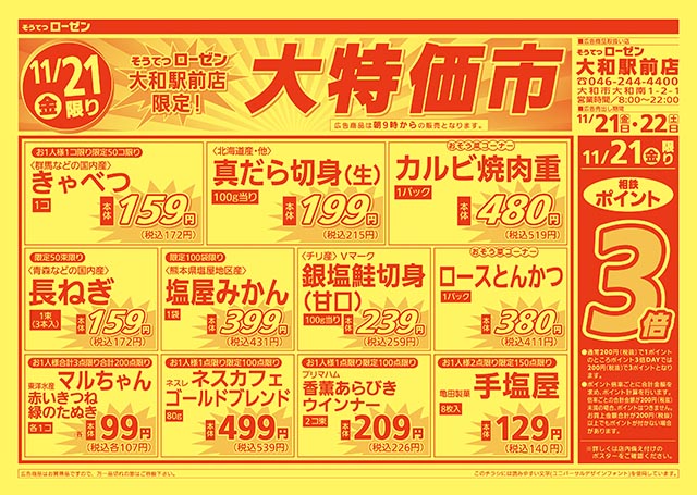 11/1〜11/30 11月限定 価格大放出!!日配