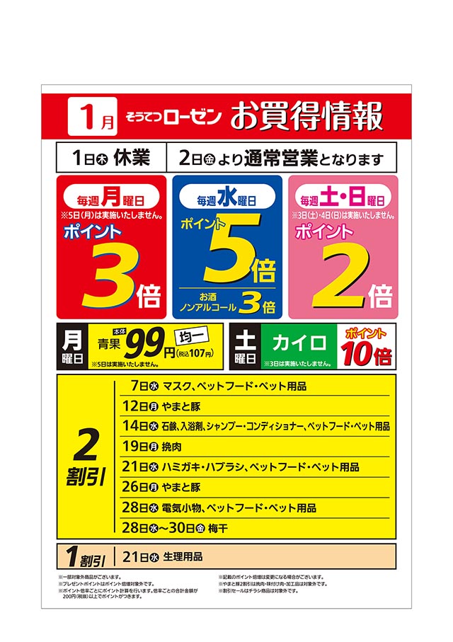 1月そうてつローゼンお買得情報