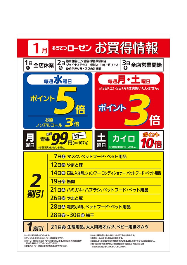 1月そうてつローゼンお買得情報