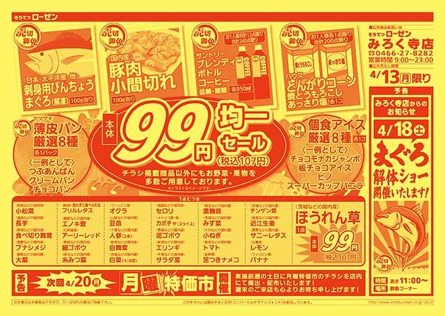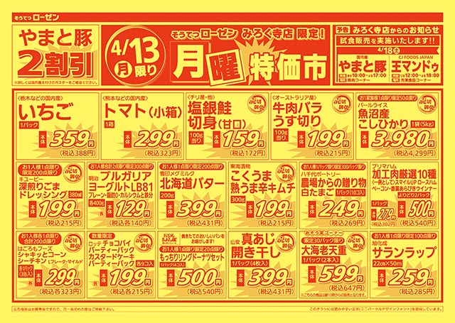 4/13(月)限り 月曜特価市